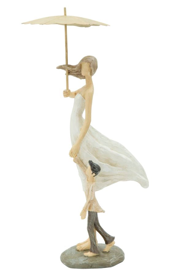 Harzstatuette einer Frau mit Kind und Regenschirm. Sie eignen sich ideal als originelle und personalisierte Geschenkidee.