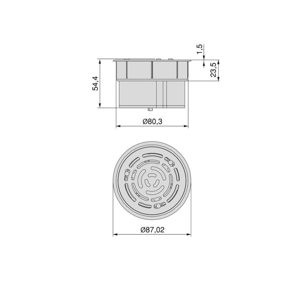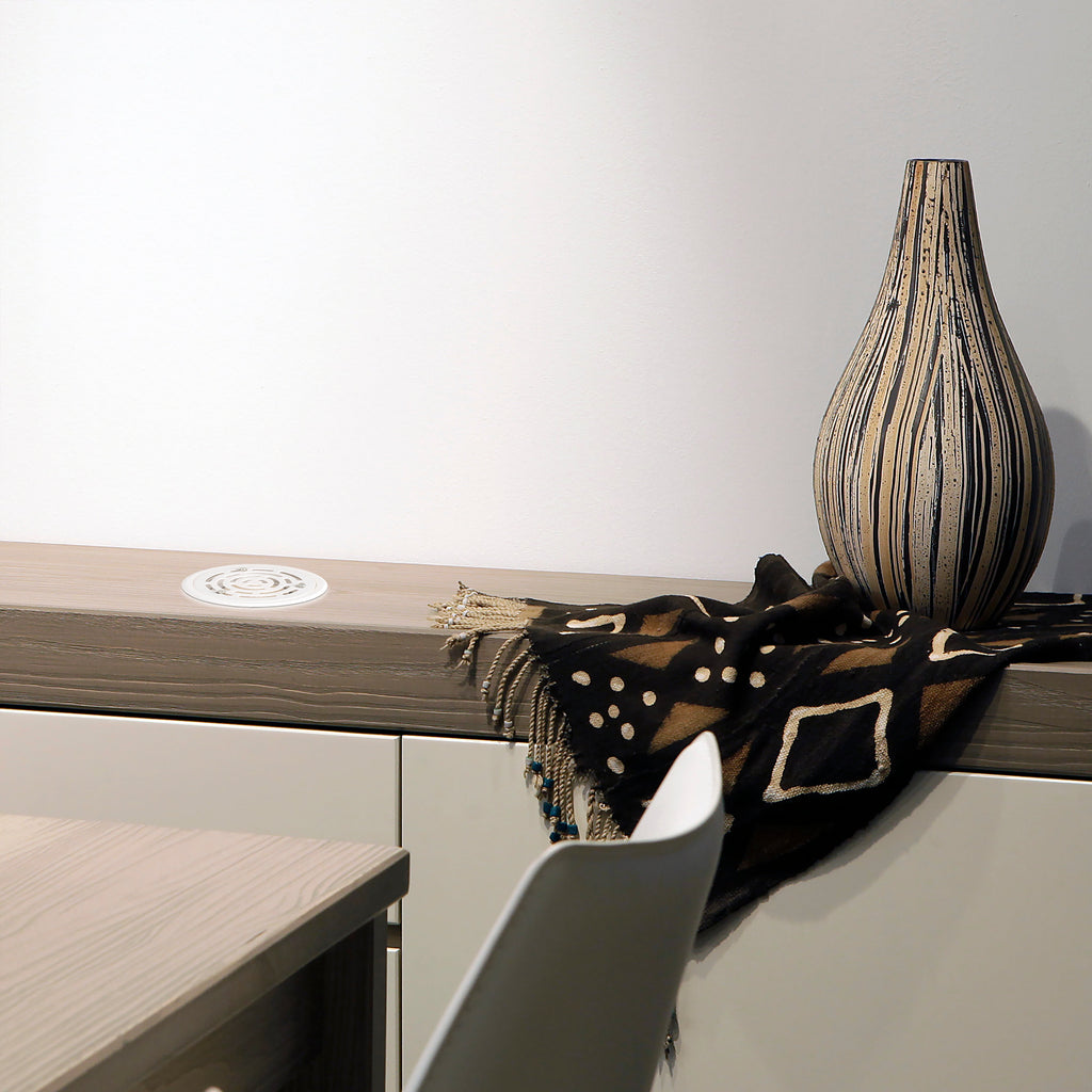 - Für seine Installation erfordert es eine Bearbeitung von Ø80 mm, um es in das Möbelstück einbetten zu können.
