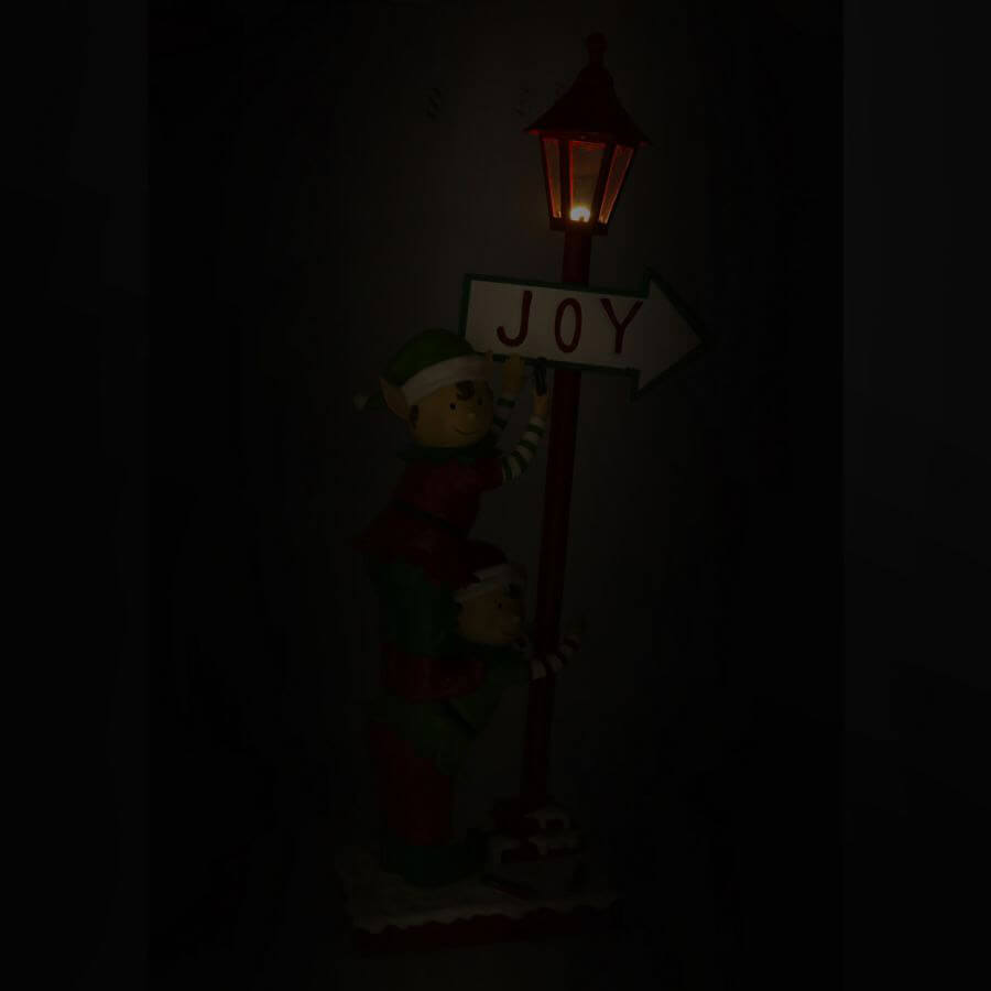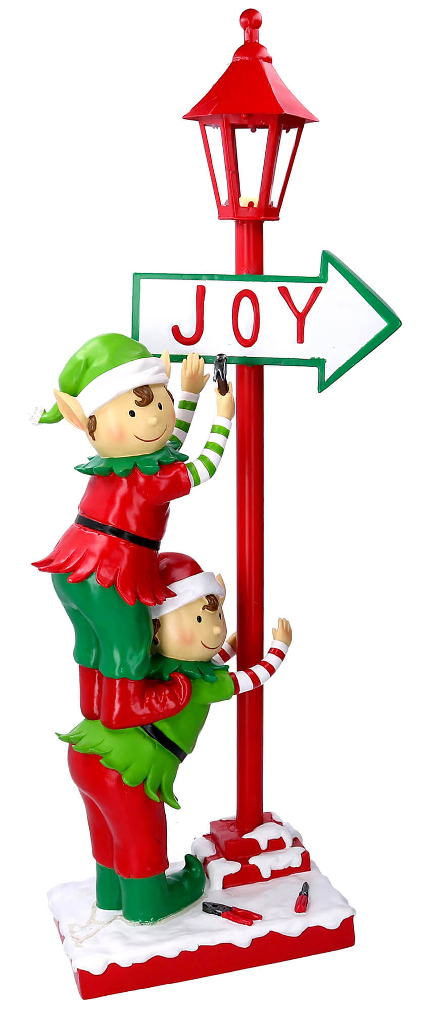 Elfen mit Laternenpfahl und Freudenschild 35 x 28,5 x H 81 cm aus rotem Adami-Kunststoff
