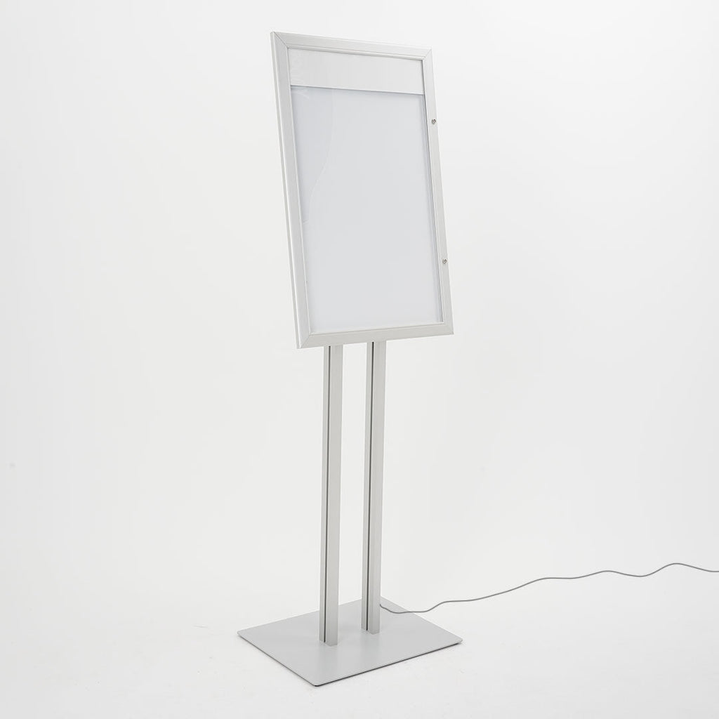 Espositore a Leggio con Piantana 29x47,7x2,3 cm in Alluminio con Led Porta Menù SilverEspositore a Leggio con Piantana 29x47,7x2,3 cm in Alluminio con Led Porta Menù Silver