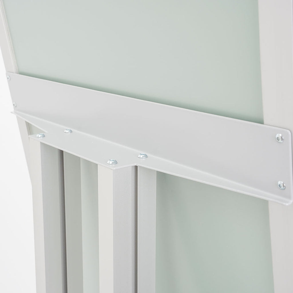 L'espositore a leggio per esterni è un supporto autoportante dalla base solida e doppio montante, perfetto per promuovere informazioni in modo visibile. Colorato con una vernice a polveri nera, ha un fondo magnetico e scrivibile in metallo bianco che permette di affiggere appunti o note importanti. L'anta in policarbonato trasparente si apre come un libro, garantendo una facile accessibilità al suo interno. La struttura è dotata di doppia serratura e chiavi, ideale per proteggere i documenti esposti, mentre il pannello di intestazione offre la possibilità di personalizzare l'espositore con un logo o di rimuoverlo completamente. Con una dimensione della cornice di 51,4x79 cm e una dimensione della struttura di 51x163 cm, è adatto per ospitare quattro fogli A4.
