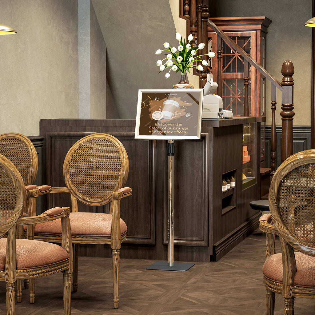- VERSATILE: Ideale per vari ambienti come fiere, negozi, uffici e scuole, questo cavalletto porta poster da pavimento è robusto su superfici solide e versatile per l'uso sia interno che esterno