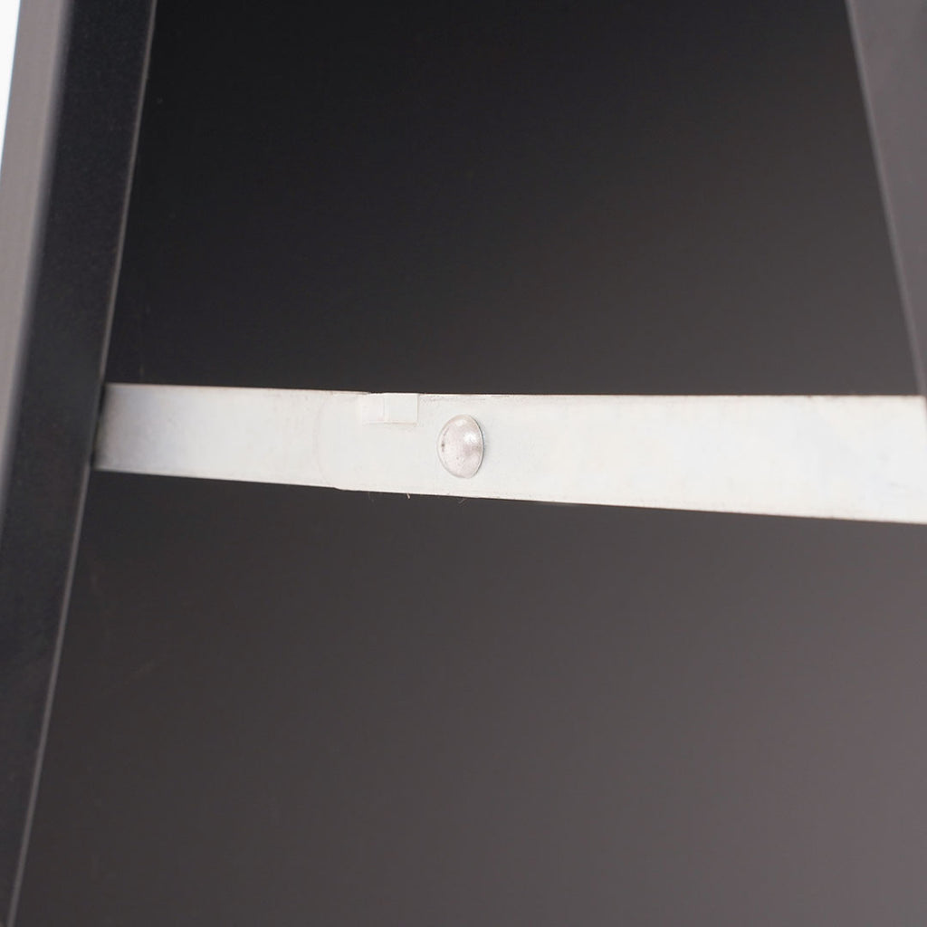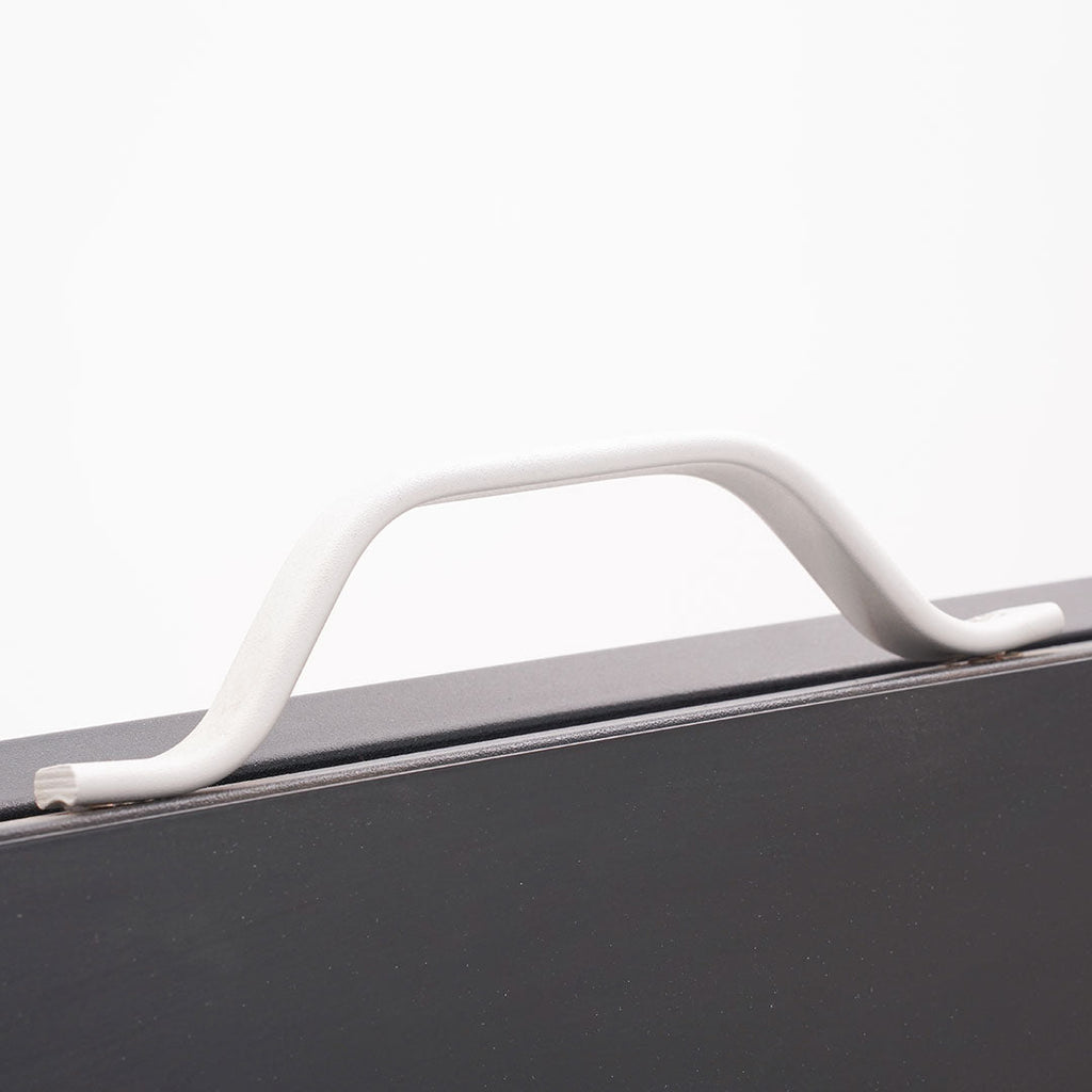 La lavagna a cavalletto bifacciale è realizzata in resistente metallo verniciato nero e dotata di pratici piedini in gomma per garantire stabilità durante l'utilizzo. È dotata di una comoda maniglia superiore, che facilita il trasporto da una stanza all'altra. Il pannello magnetico e scrivibile, disponibile nei colori bianco e nero, offre ampio spazio per scrivere e attaccare comodamente appunti e documenti. Le dimensioni del pannello sono di 60x90 cm e l'intera lavagna misura 60,5x90x62 cm.
