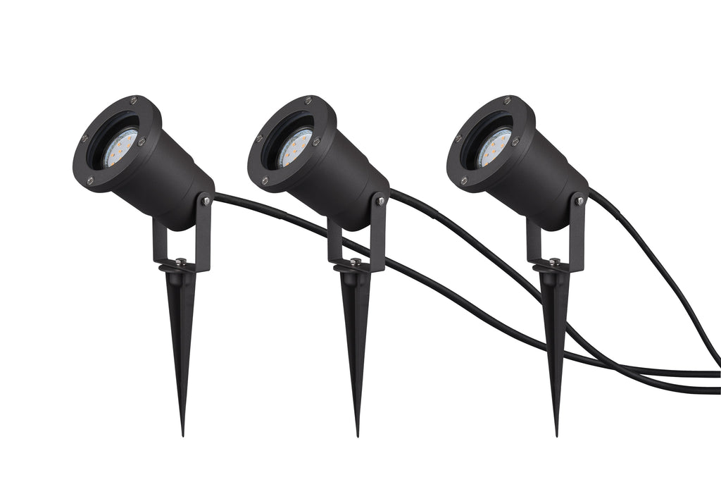 Ubangi Kit 3 Außenleuchten mit Spike Anthrazit Aluminiumguss IP54 5 Meter + 2X3 Meter Kabel