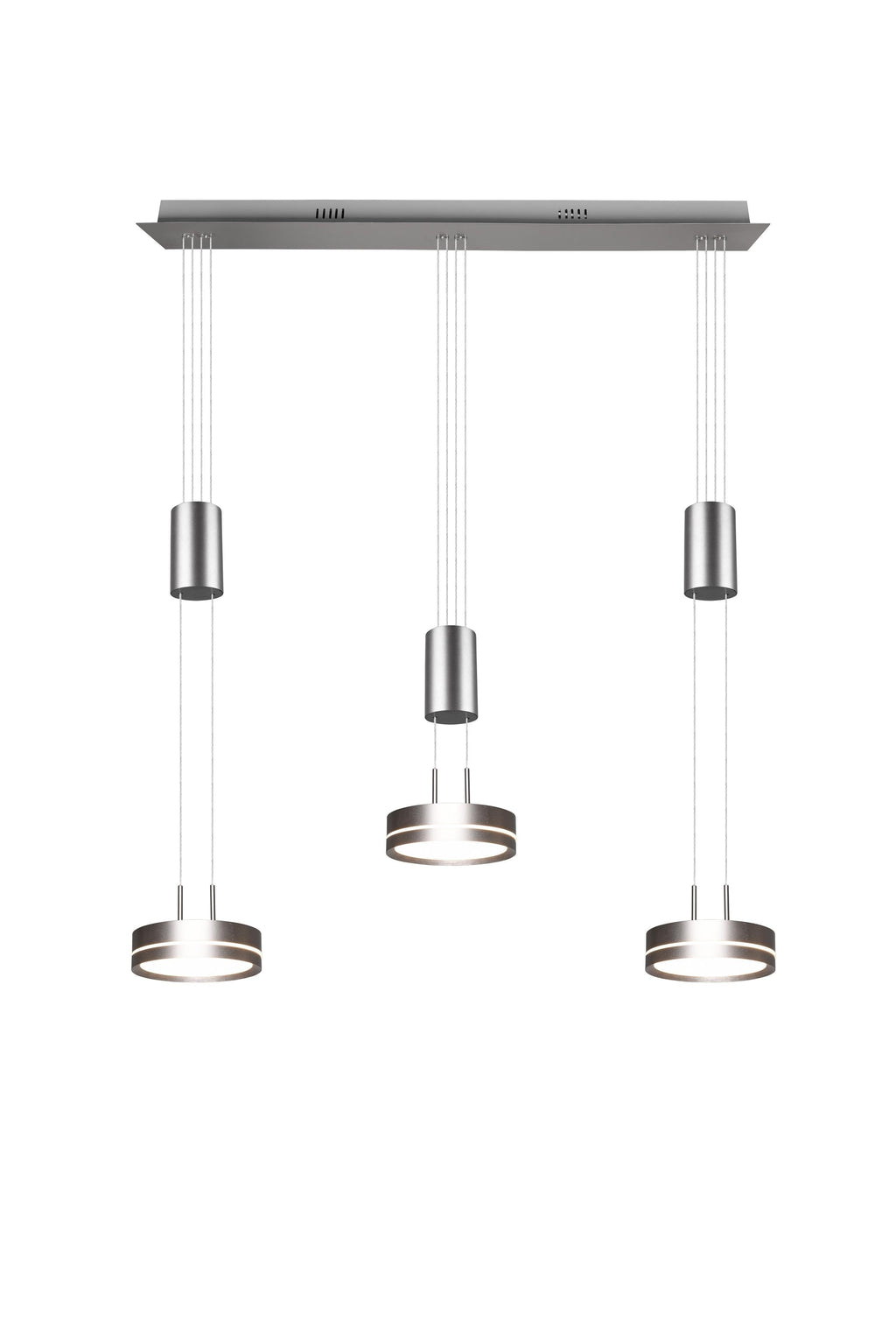 Franklin Bar 3 LED-Aufhängungen Höhenverstellbar mit Kipphebeln Intensitätseinstellung aus satiniertem Stahl mit Wandschalter L. 85 cm