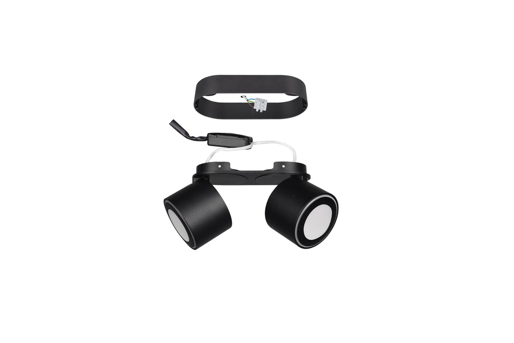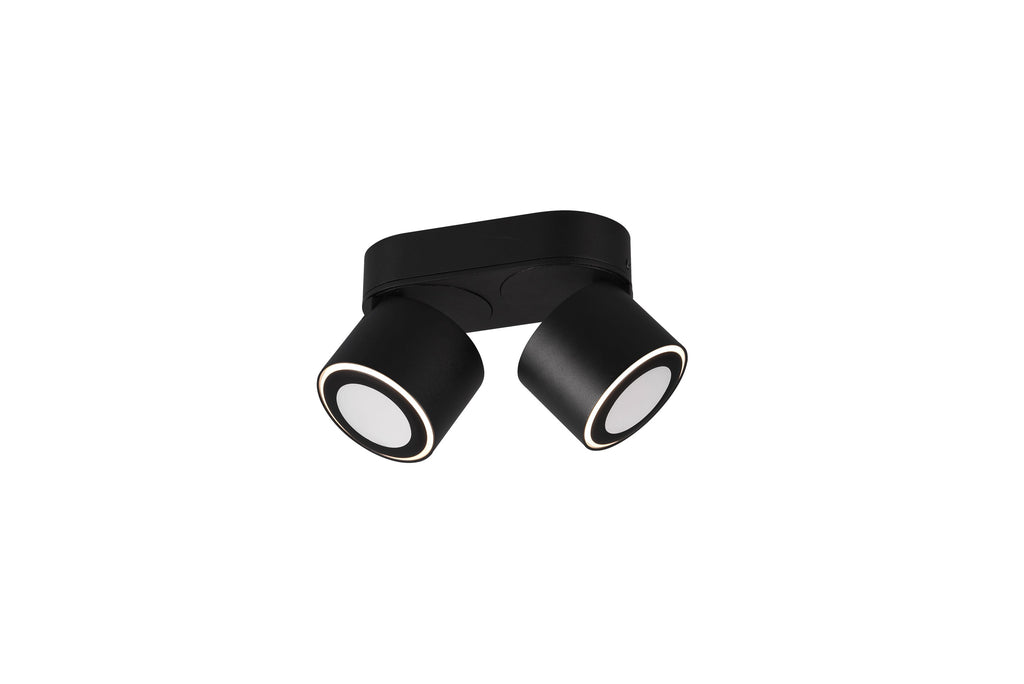 Taurus Bar 2 LED-Spots aus schwarzem Metall, verstellbar, drehbar, Bi-Emission, separate Schalter, L. 18 cm