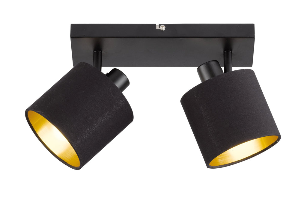 Tommy Barra 2 Spots mit Lampenschirm-Diffusoren in Schwarz und Gold Basismetall Mattschwarz L.28Cm