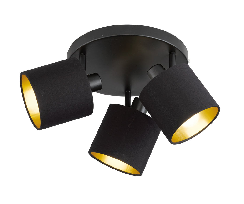 Tommy Deckenleuchte 3 Spots mit Lampenschirm-Diffusoren in Schwarz und Gold Basismetall Mattschwarz D.25Cm