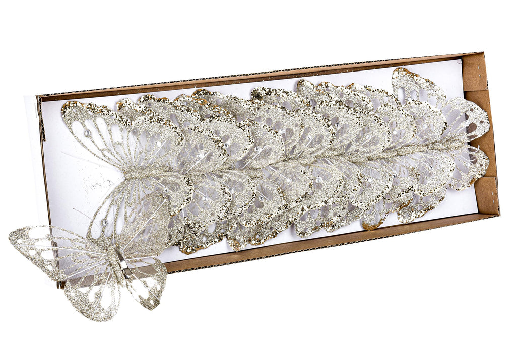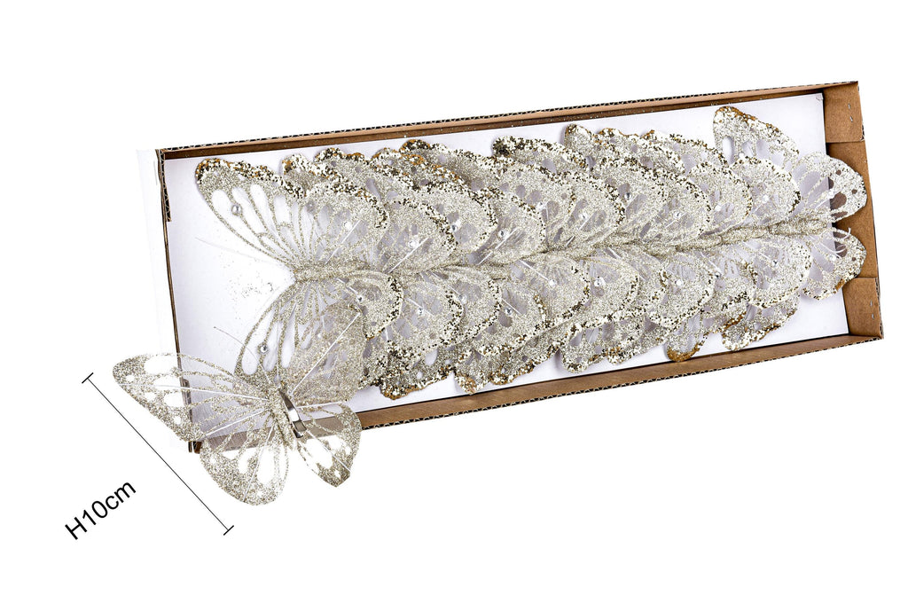 Schmetterlinge mit Glitzer und Clips 24 Stück Ø10 cm Champagner