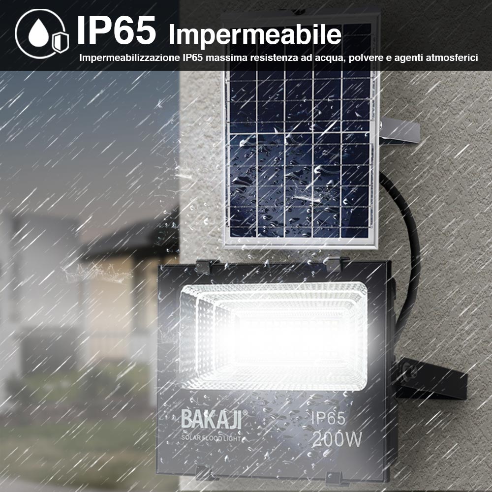 Faro LED 200W Pannello Solare Luce Esterno Alta Luminosita 2000 lm + Telecomando