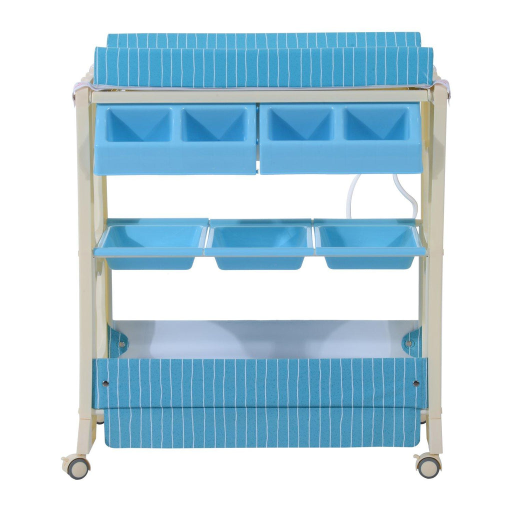 Blauer Wickeltisch aus ungiftigem Kunststoff mit Tablett und Staufächern 81 x 53 x 102 cm
