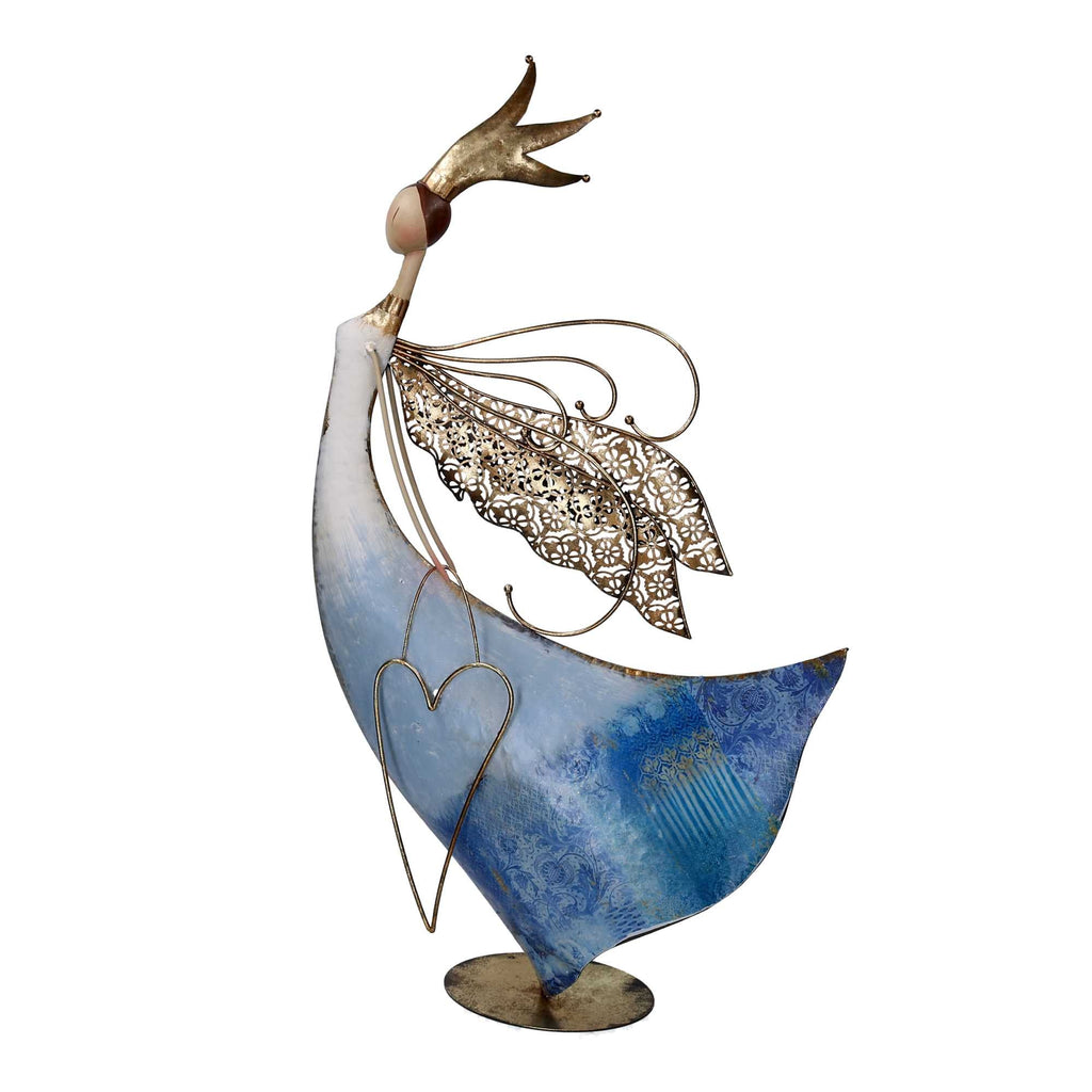 Fatina metallo con cuore blu e oro cm 42x10,8xh74,3