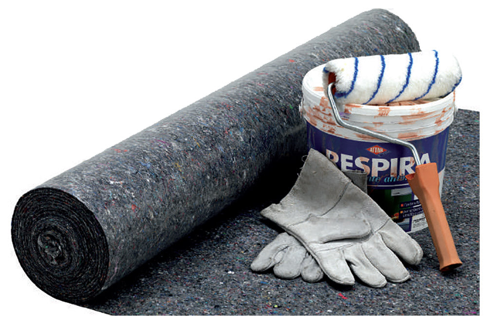 Thermofixierter Saugfilz 220 g/m2 mit rutschfester Polyethylenunterlage 40 g/m2 frei von Fluorchlorkohlenwasserstoffen, Schwermetallen, Formaldehyd, Fungiziden und Pestiziden. In Rolle verpackt.