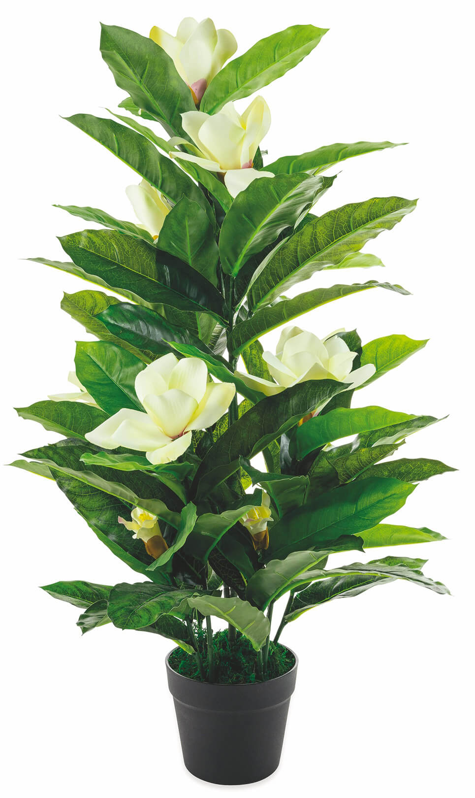 Kunstblumen H90 cm aus Kunststoff mit Vase Soriani White Magnolia
