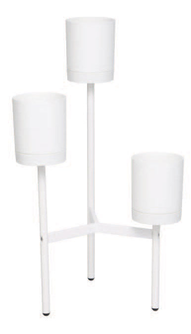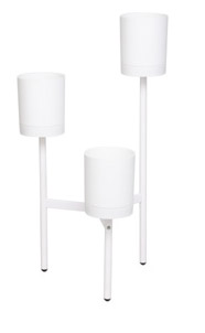 I tre portavasi sono realizzati in polipropilene bianco e sono dotati di un basamento forato per permettere la fuoriuscita dell'acqua in eccesso. Il basamento è realizzato in lega di acciaio verniciato bianco. È necessario pulire regolarmente la parte in plastica con un panno pulito o una spugna imbevuta di acqua tiepida, evitando l'uso di oggetti appuntiti per non graffiare la superficie. Per la parte metallica basterà passare un panno asciutto.