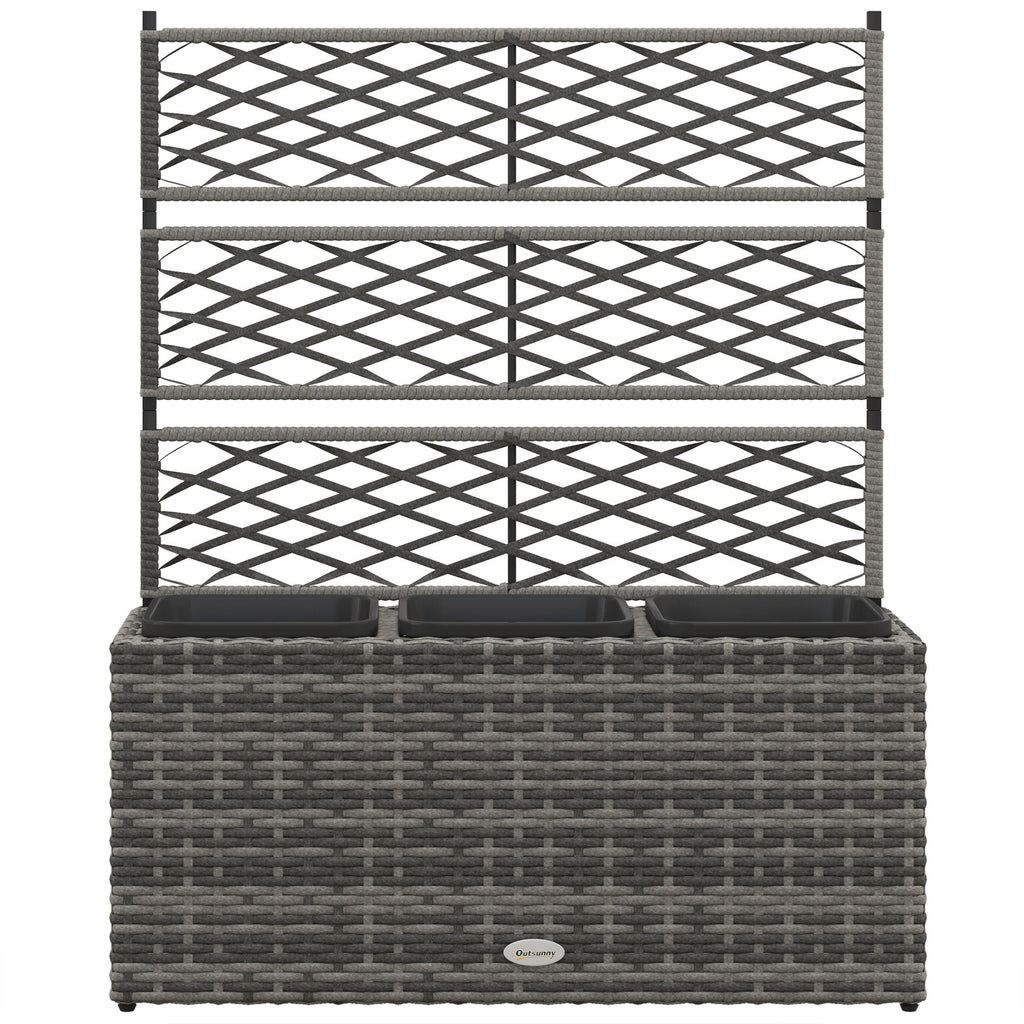 Fioriera con Grigliato per Rampicanti con 3 Vasi 84x30x107 cm in Acciaio e Rattan PE Grigio