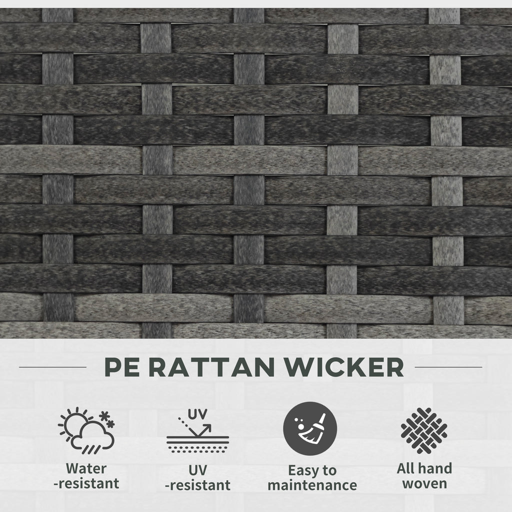 Fai crescere le tue piante in uno spazio pratico ed elegante con questa fioriera da giardino . Il cassone è diviso in 3 sezioni con vasi separati che ti aiutano a dare a ogni pianta lo spazio di cui ha bisogno per crescere. Il traliccio integrato offre un supporto ottimale per far crescere le piante rampicanti ed è perfetto per appendere anche piccole decorazioni. Realizzata con una robusta struttura in acciaio e rivestita in rattan PE, la fioriera è resistente e decorativa.