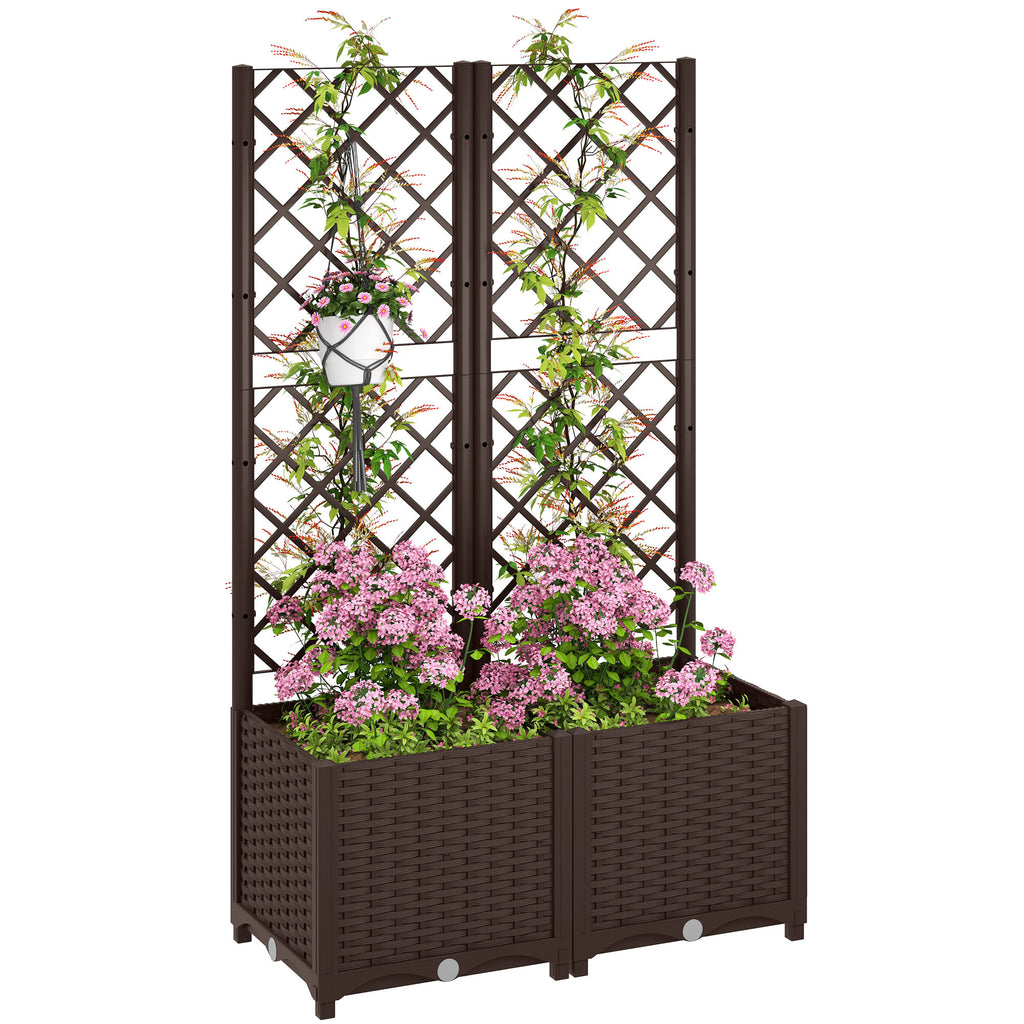 Fioriera con Traliccio per Rampicanti 80x40x135 cm 8 Fori di Drenaggio in PP Marrone