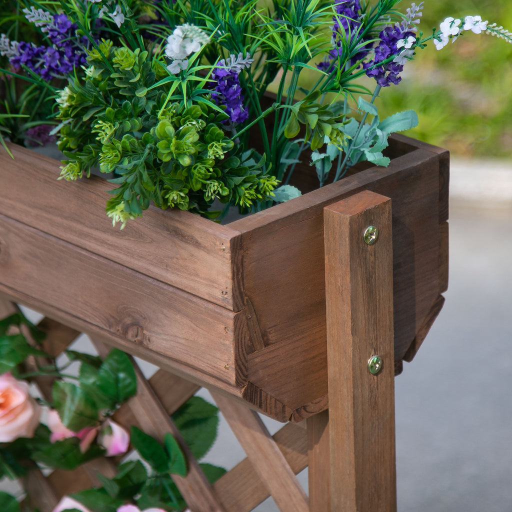 Möchten Sie Ihrem Garten mühelos Kletterpflanzen hinzufügen? Der erhöhte Blumentopf gibt Ihnen die Unterstützung, nach der Sie gesucht haben. Der Sockel mit Holzspalier und die obere Vase lassen die Pflanzen, die nach unten klettern, die ideale Umgebung finden, in der sie üppig wachsen können. Das erhöhte Design ermöglicht es Ihnen, Ihre Pflanzen im Stehen zu pflegen und so das ermüdende Bücken zum Boden zu vermeiden. Wählen Sie diesen Pflanzkübel aus Holz, um eine praktische und dekorative Stütze für Ihre Pflanzen zu haben!