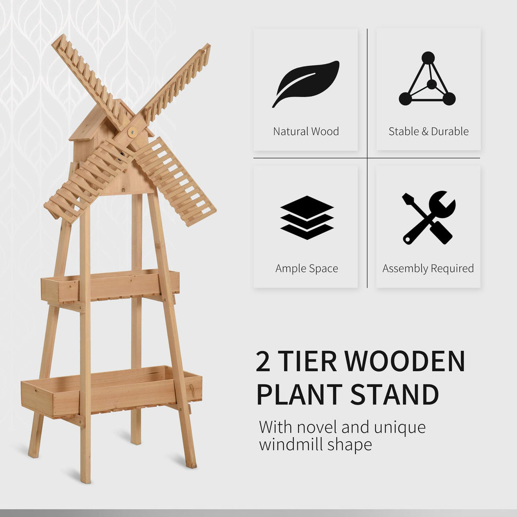 Schmücken Sie Ihren Balkon oder Ihr Wohnzimmer mit diesem vertikalen Pflanzgefäß aus Holz. Kreativ und lustig, es hat zwei Regale, um Ihre Pflanzen zu arrangieren, und eine Windmühle mit Vogelhaus oben. Aus Holz gefertigt, ist er stabil und robust und das perfekte Accessoire, um jeden Raum im Haus zu dekorieren.