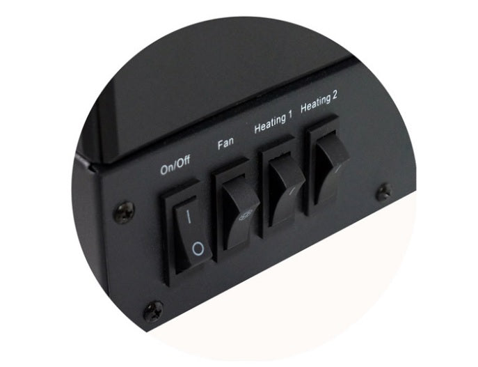 - 2 Heizstufen 1000 + 1000W wählbar über die Feuerbox