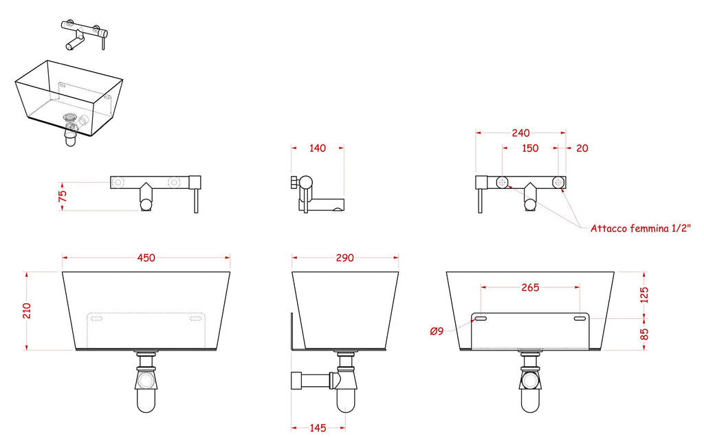 - Composta da 3 elementi: miscelatore, vaschetta e mensola a scomparsa