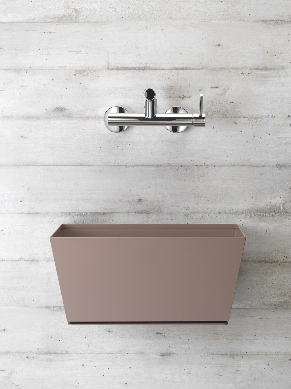 Fontana a parete da giardino dal design innovativo e originale, 42/PRQM con Miscelatore e Vasca Rettangolare della Belfer.