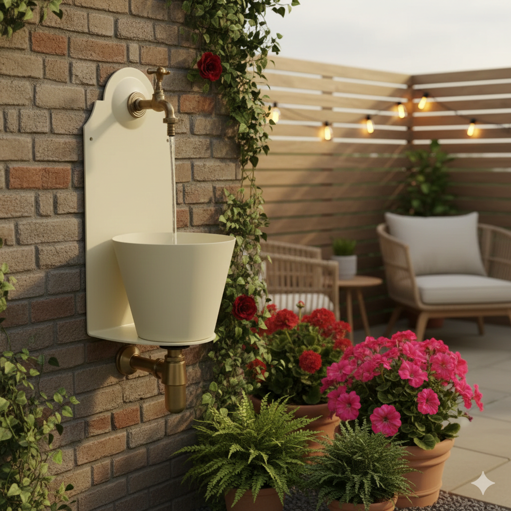 Garten-Wandbrunnen mit Belfer 42/PR Elfenbeinhahn