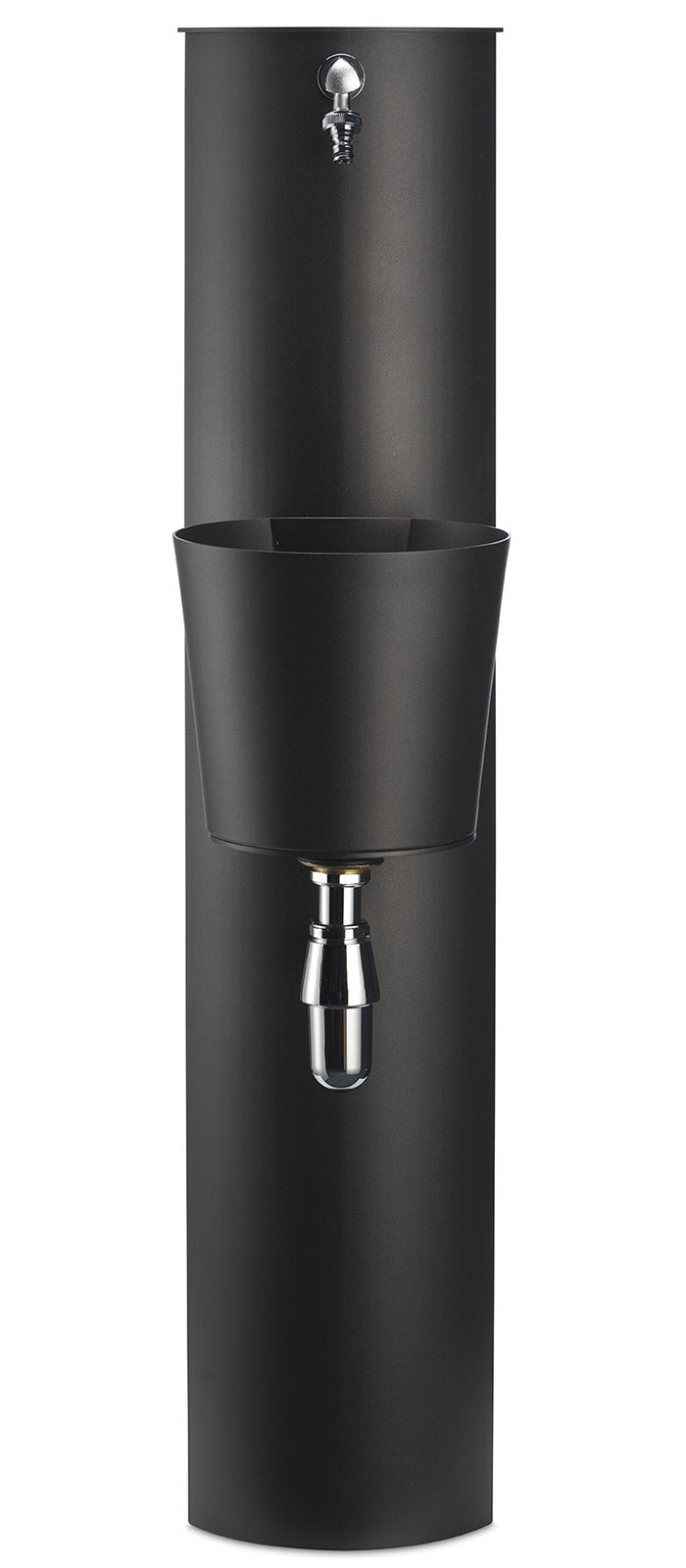 Gartenwandbrunnen mit innovativem und originellem Design , 42/PRT mit Wasserhahn und Eimer von Belfer , der die Installation mit Wasser-/Abflussanschlüssen in variablen Höhen ermöglicht: Wasseranschlusshöhe von 0 bis 116 cm, Ablaufanschlusshöhe von 0 bis 55 cm.