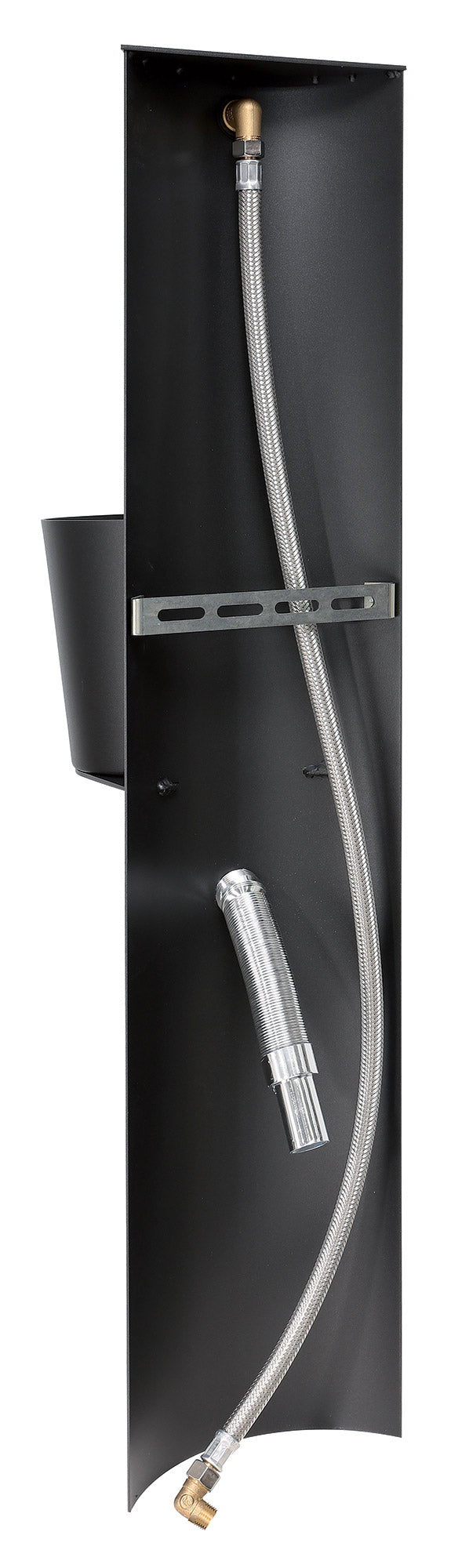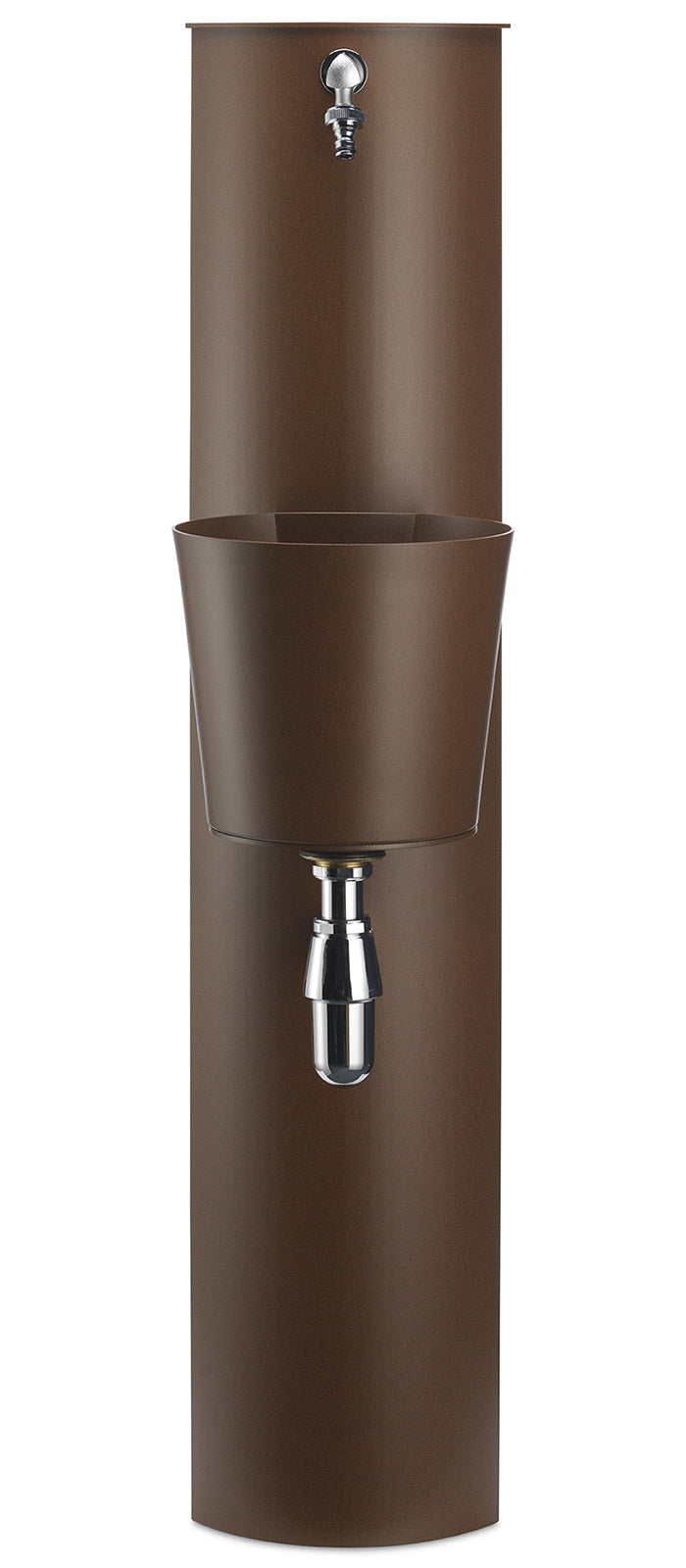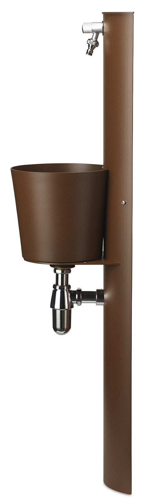 Gartenwandbrunnen mit innovativem und originellem Design , 42/PRT mit Wasserhahn und Eimer von Belfer , der die Installation mit Wasser-/Abflussanschlüssen in variablen Höhen ermöglicht: Wasseranschlusshöhe von 0 bis 116 cm, Ablaufanschlusshöhe von 0 bis 55 cm.