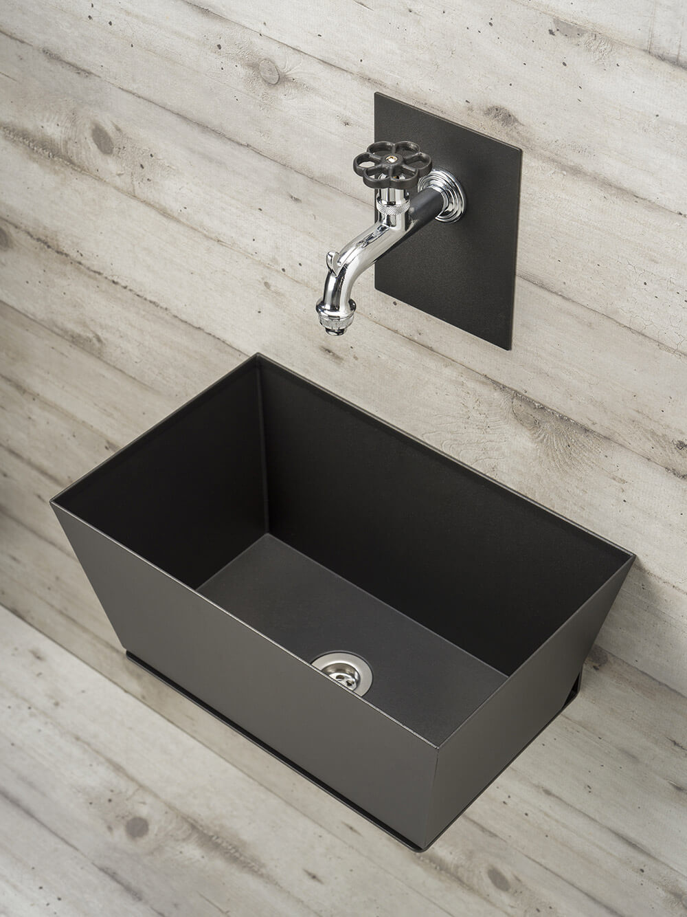 Gartenwandbrunnen mit Wasserhahn und Wanne 45x29x20 cm Belfer 42/PRQ Anthrazit