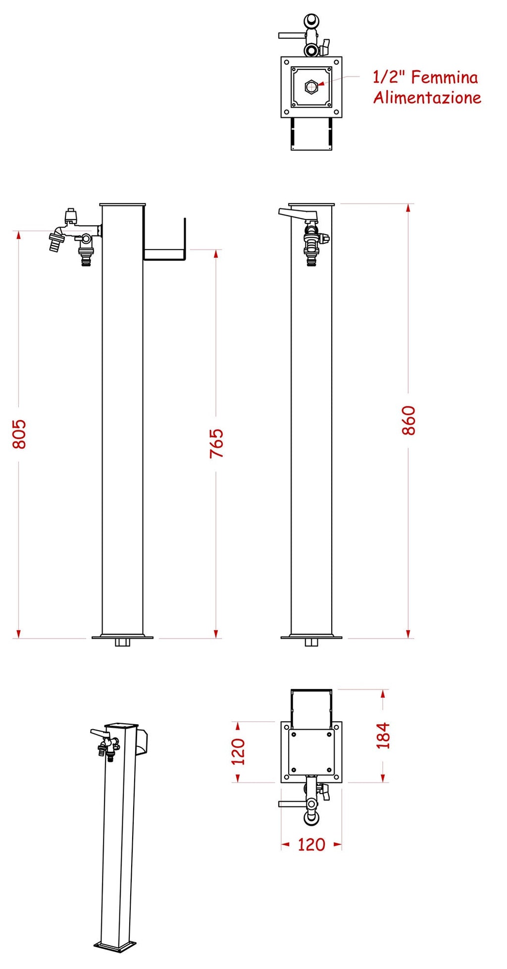 - Wasseranschlussfitting: 1/2" weibliches Drahtrohr
