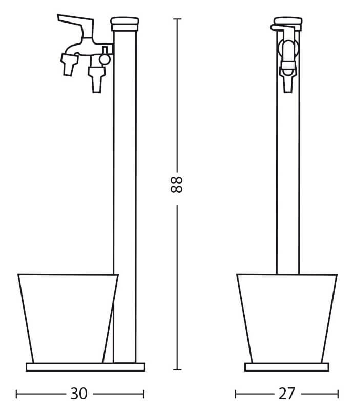 Hoher Gartenbrunnen mit Becken in innovativem und originellem Design , 42/SRV mit Kugelhahn mit Doppelanschluss von Belfer .