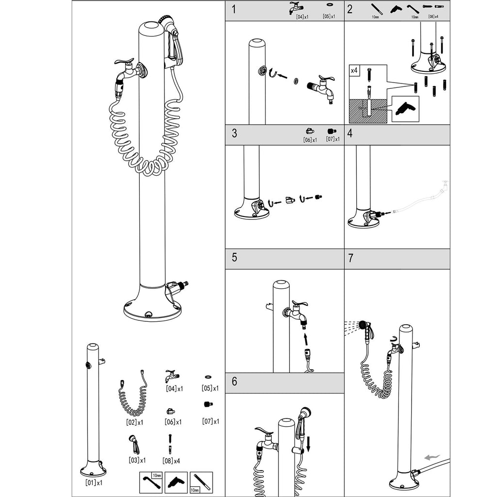 Fontana da Giardino in Alluminio Tubo 7,5 m e Pistola a Spruzzo con 8 Getti Sined Alu Nero