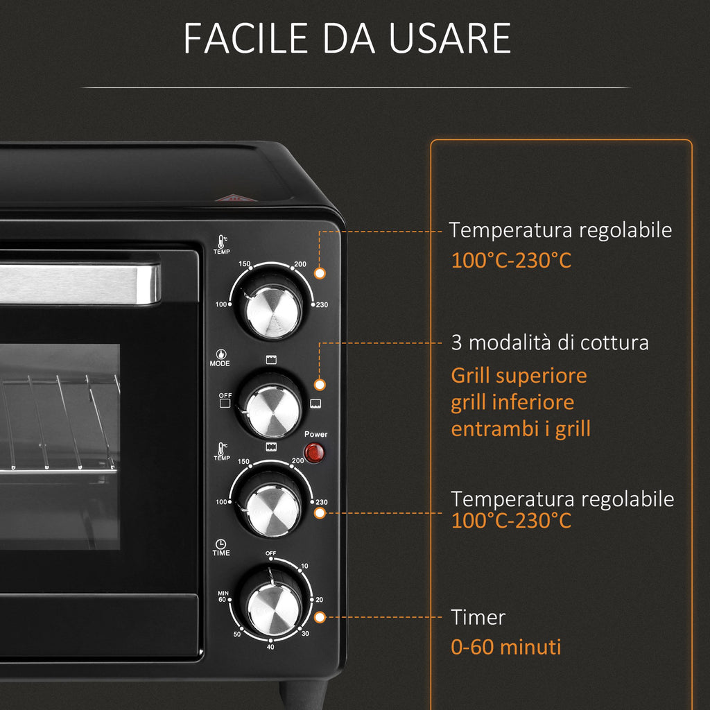 Elektroofen 32 Liter mit Grill und schwarzem Backblech