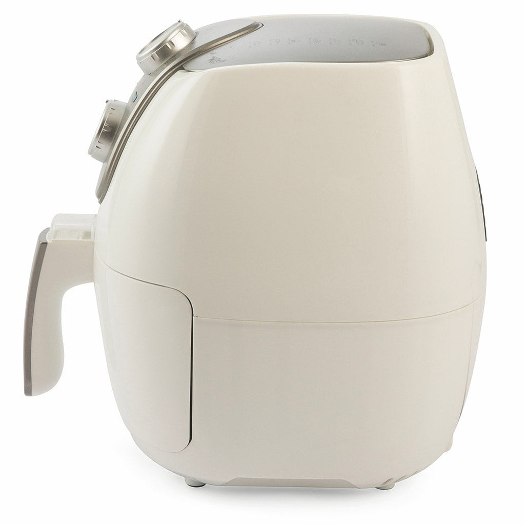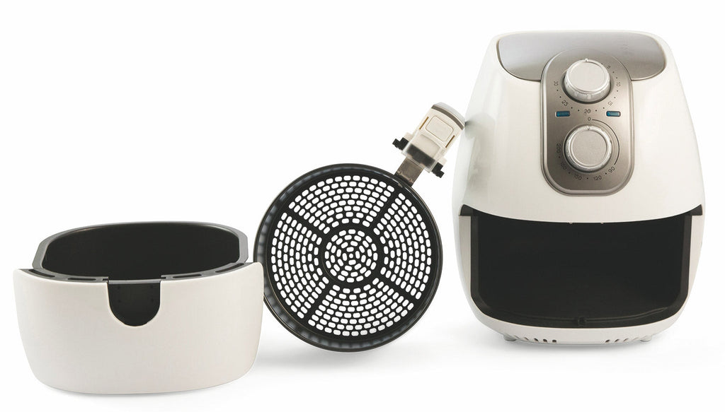 Aryel ist die Heißluftfritteuse, mit der Sie alle Speisen gleichzeitig auf köstliche und gesunde Weise zubereiten können. Das Gerät verwendet eine Kombination aus heißer Luft, die schnell und intensiv zirkuliert. Dieser schnelle, fettfreie Fluss bewahrt den weichen Kern der Gerichte und erzeugt eine knusprige und krümelige Oberfläche, genau wie bei einer anständigen Bratpfanne. Die einstellbare Temperatur garantiert ein einwandfreies Garen für jede Konsistenz. Überschüssiges Öl wird nicht mehr benötigt und der schlechte Geruch im Haus nach dem Frittieren wird nur noch eine schlechte Erinnerung sein!