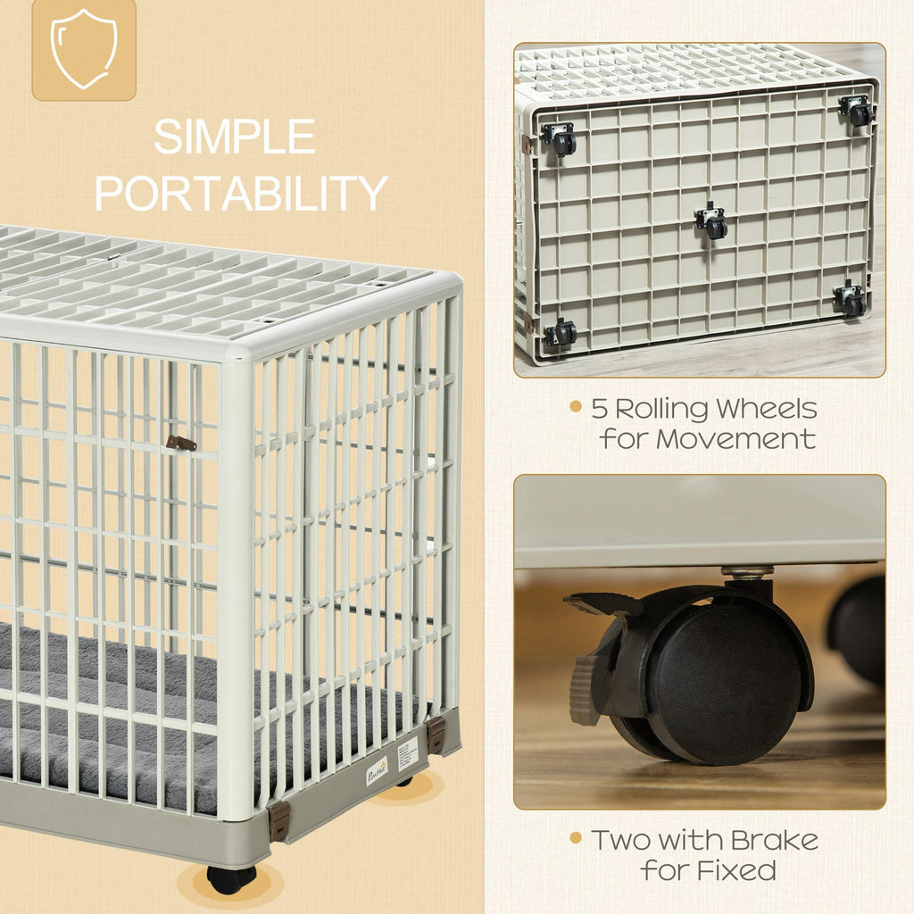 - PRAKTISCH: Der Hundekäfig ist mit fünf Schwenkrädern ausgestattet, die es bequem machen, sich von einem Raum in einen anderen zu bewegen. Wenn Sie ein Rad mit Bremse haben, können Sie es überall leicht befestigen