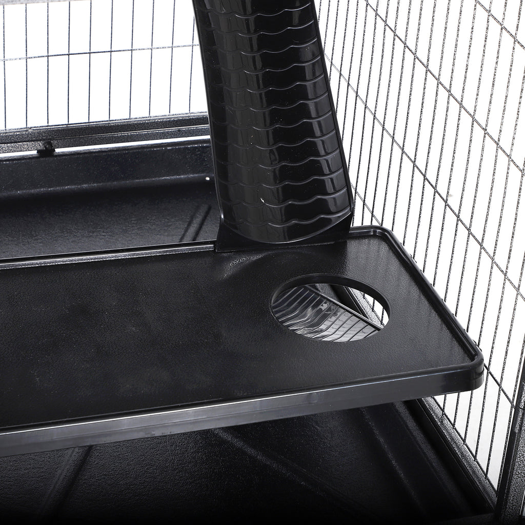 Gabbia per Conigli a 5 Livelli con 4 Ingressi e Amaca 80x52x128 cm in Metallo e PP Argento e Nero