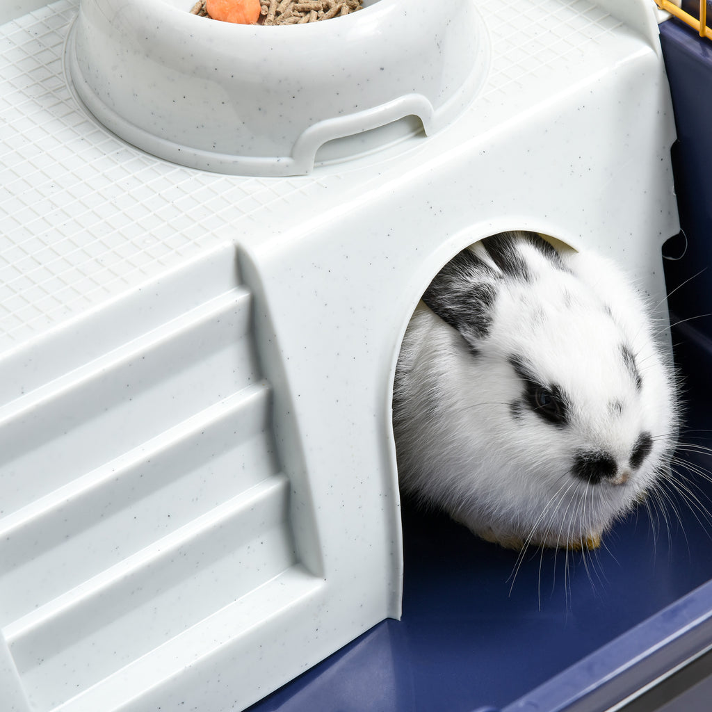 - EIN KOMPLETTES HAUS: Der Käfig für Kaninchen und Meerschweinchen ist mit einer erhöhten Struktur ausgestattet und enthält alle Zubehörteile, die Ihre Tiere benötigen, wie z. B. Wasserflasche, Futternapf, Heubehälter.