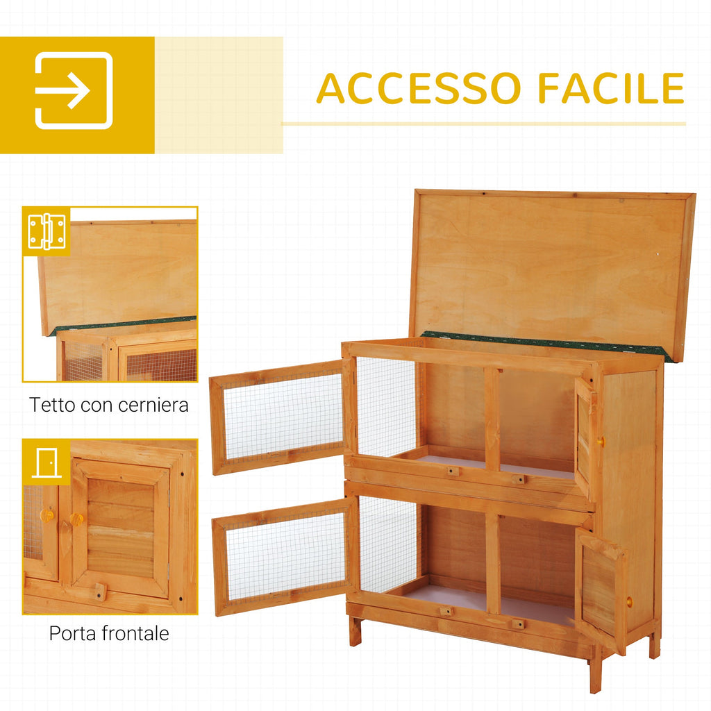 Der Käfig aus superstabilem und langlebigem Tannenholz bietet eine komfortable Umgebung für Ihre Kaninchen.
