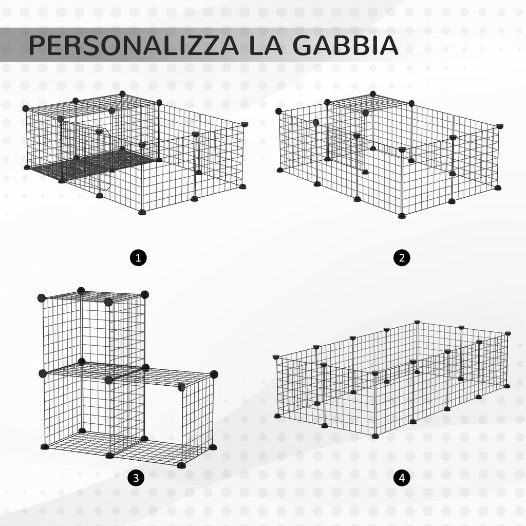 Der Haustierkäfig wurde entwickelt, um Ihren Haustieren einen individuellen Platz zu bieten. Dank der Verbindungselemente können Sie die Paneele nach Belieben zusammenstellen und einen individuellen Bereich für Ihre kleinen Freunde schaffen. Die Struktur verfügt über eine Tür zum einfachen Ein- und Aussteigen aus dem Käfig und ist perfekt für Meerschweinchen, Hasen und andere Kleintiere.