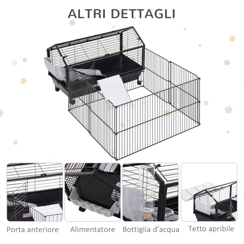 Innenkäfig für Kaninchen Nagetiere 88 x 128,5 x 56 cm aus Metall und schwarzem Kunststoff