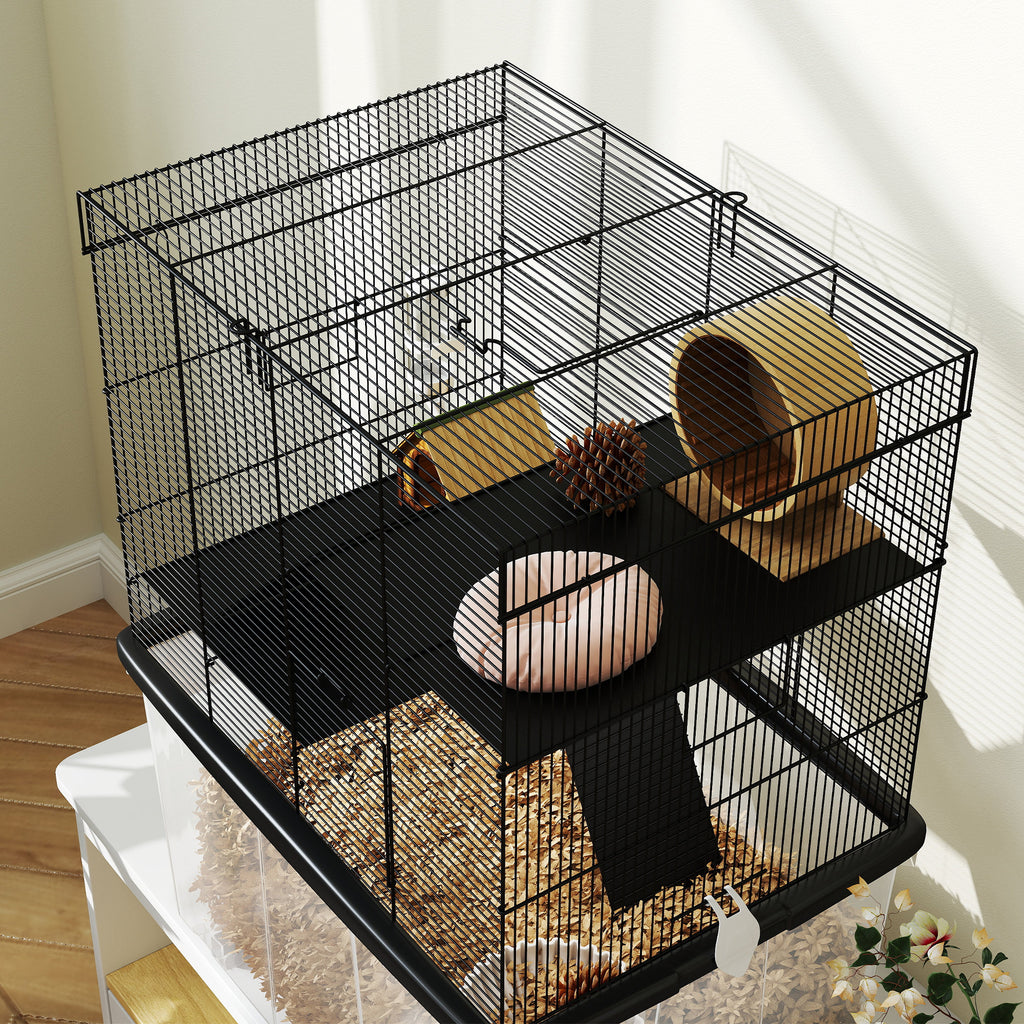 Gabbia per Criceti a 3 Piani 58x43x74 cm con Rampe e Accessori Nero