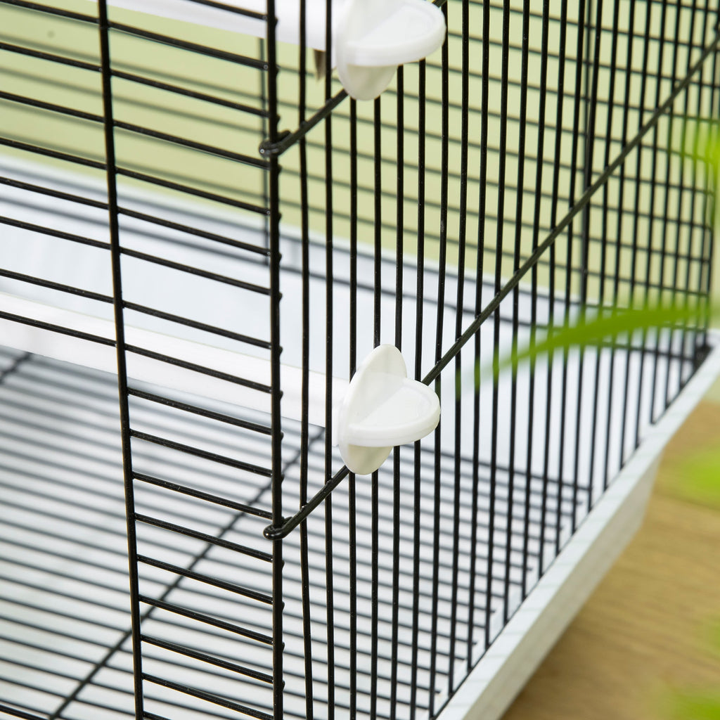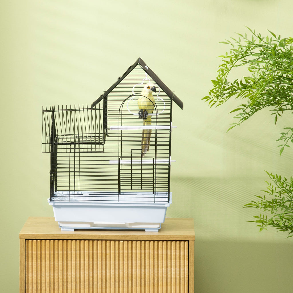 Vogelkäfig mit Griff 39 x 33 x 47 cm aus Metall mit abnehmbaren Heringen und Wippe weiß