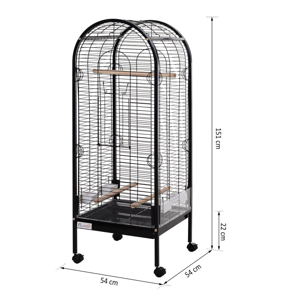 Vogelkäfig aus Metall 54x54x151 cm mit schwarzen Sitzstangen