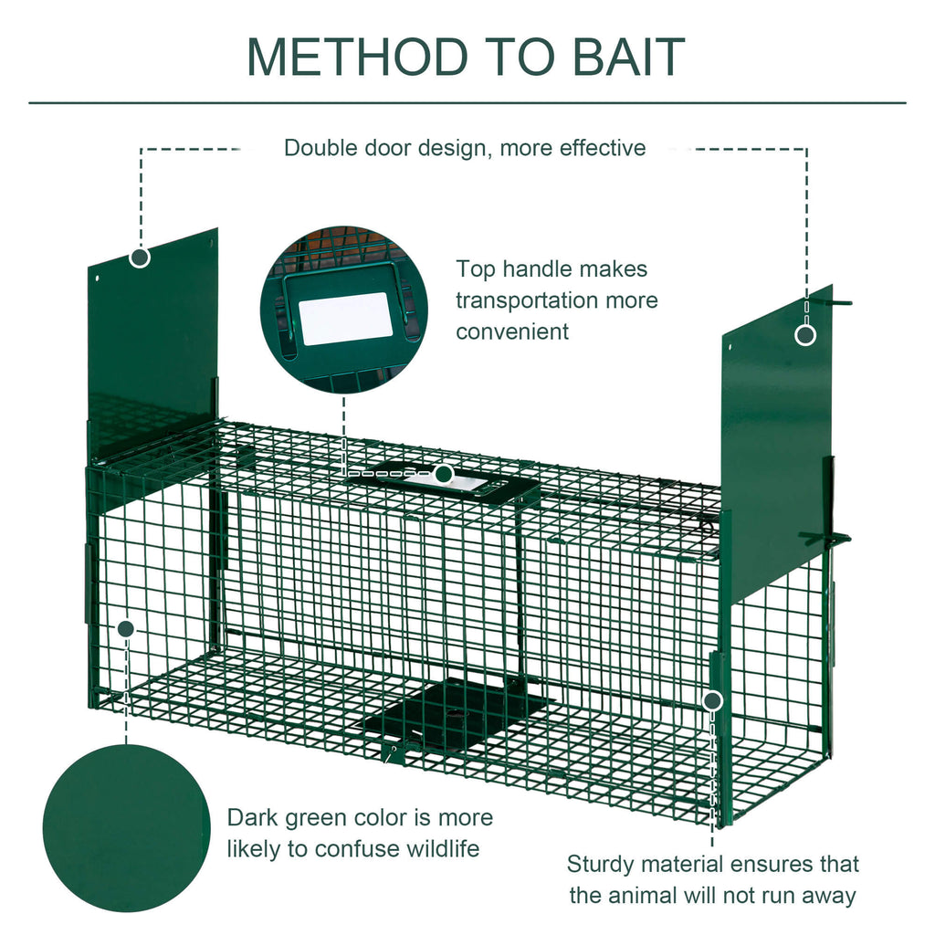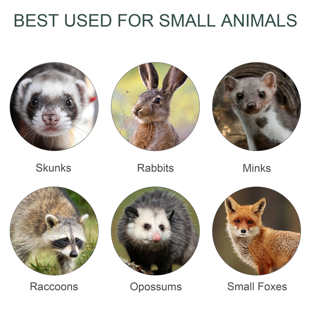 - FACILE DA USARE: Posizionare la trappola nel percorso dell'animale e caricare l'esca all'interno della piastra a pressione. Una volta che la piastra è piena, la trappola scatterà quando l'animale prende l'esca chiudendo entrambe le porte