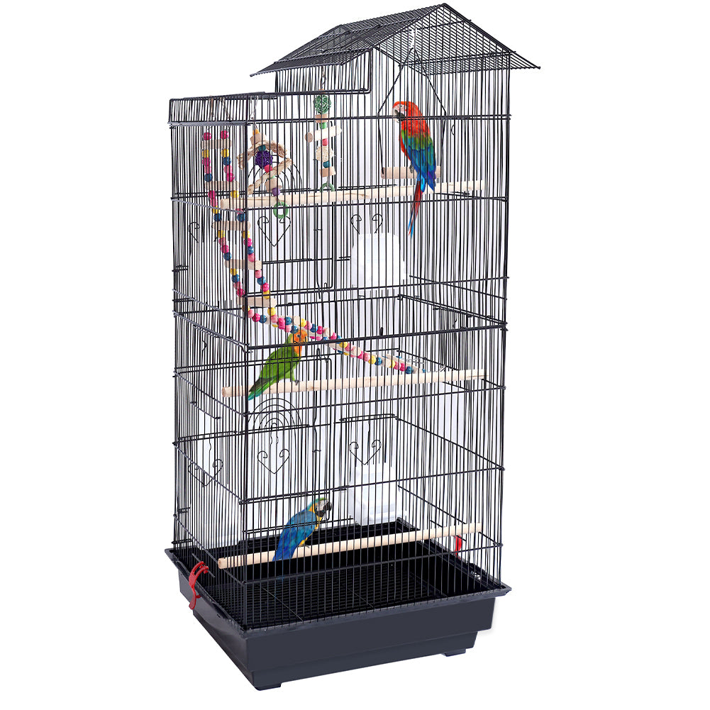 Gabbia Voliera Nera per Uccelli Volatili Pappagalli con 2 Aperture e Giocattoli