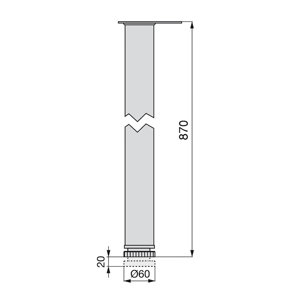 Verstellbare Beine mit einem Durchmesser von 60 mm sind ideal für jede Art von Möbeln in Haushalt und Büro. Sie sind aus Stahl und höhenverstellbar . Die Montage ist einfach und erfolgt, indem eine Platte mit Schrauben (im Lieferumfang enthalten) an die Tischplatte geschraubt und dann das Bein an die Platte geschraubt wird. Auf diese Weise kann die Montage und Demontage des Tischbeins mehrfach erfolgen.