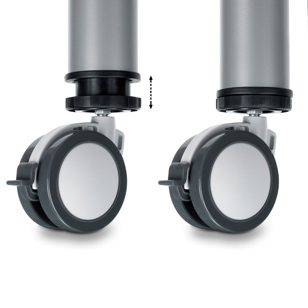 Verstellbare Beine mit Rad und Bremse Ø60 mm Verpackung 1 Stück Lackiertes Aluminium Stahl Emuca