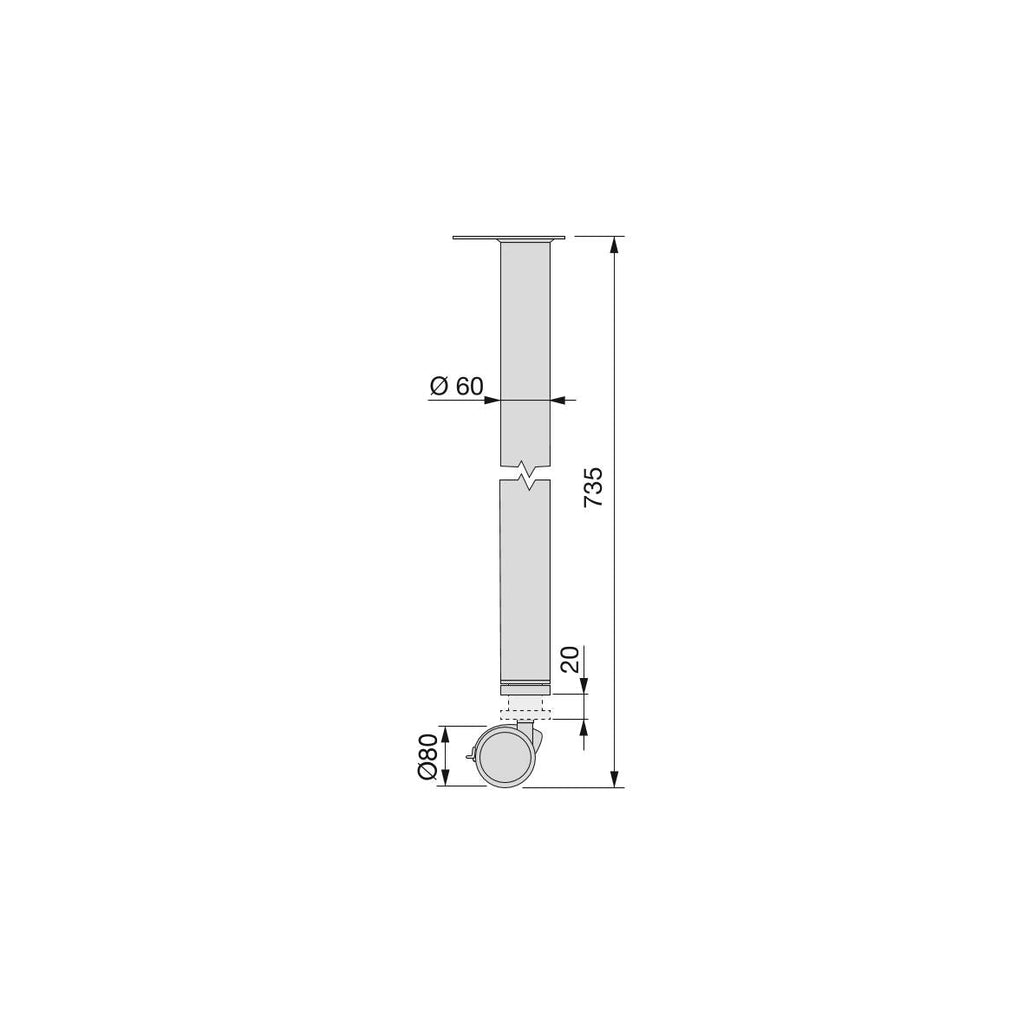 Verstellbare Beine für Küchentische, Esstische oder Couchtische. Sie sind aus Stahl und höhenverstellbar. Durchmesser 60 mm Es hat ein Rad mit Bremse, um den Tisch bewegen und funktionsfähig machen zu können. Die Montage ist einfach und erfolgt, indem eine Platte mit Schrauben (im Lieferumfang enthalten) an die Tischplatte geschraubt und dann das Bein an die Platte geschraubt wird. Auf diese Weise kann die Montage und Demontage des Tischbeins jederzeit erfolgen. Darüber hinaus blockiert die zentrale Buchse den Regler, um eine bessere Fixierung des Beins zu erreichen.